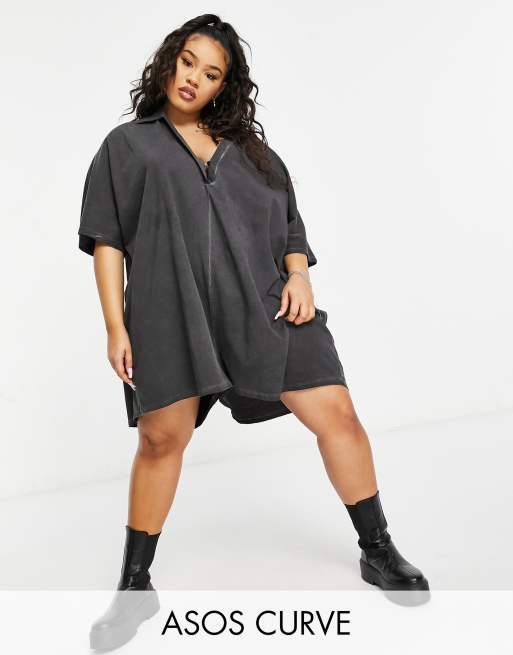 ASOS DESIGN Curve oversized romper in washed black BLACK ASOS
