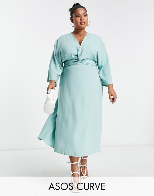 ASOS DESIGN Curve batwing twist front midi skater dress in duck egg
