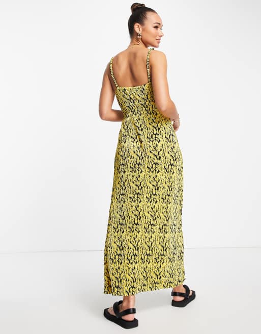 ASOS DESIGN plisse strappy maxi dress in yellow daisy print ASOS