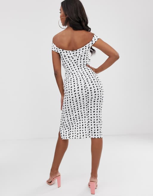 ASOS DESIGN dalmatian spot off shoulder midi dress