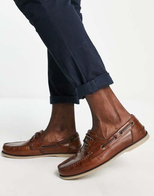 ASOS DESIGN Bootsschuhe aus braunem Leder mit Gummisohle ASOS