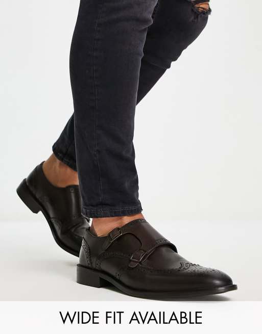 ASOS DESIGN Monk Schuhe aus braunem Leder mit Budapester Design