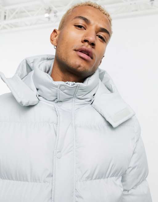 ASOS DESIGN puffer jacket with detachable hood in grey