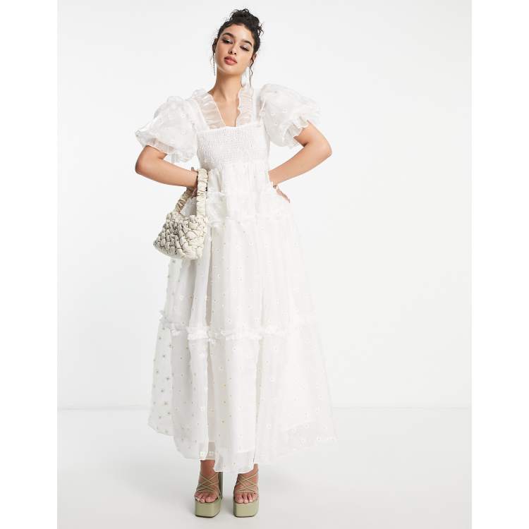 Dream Sister Jane Bridal puff sleeve organza maxi dress in white floral