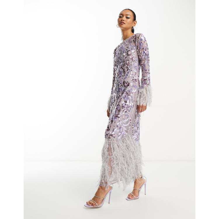 ASOS EDITION sequin and faux feather fringe midi dress in lilac