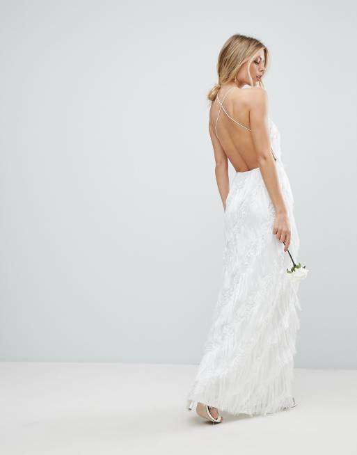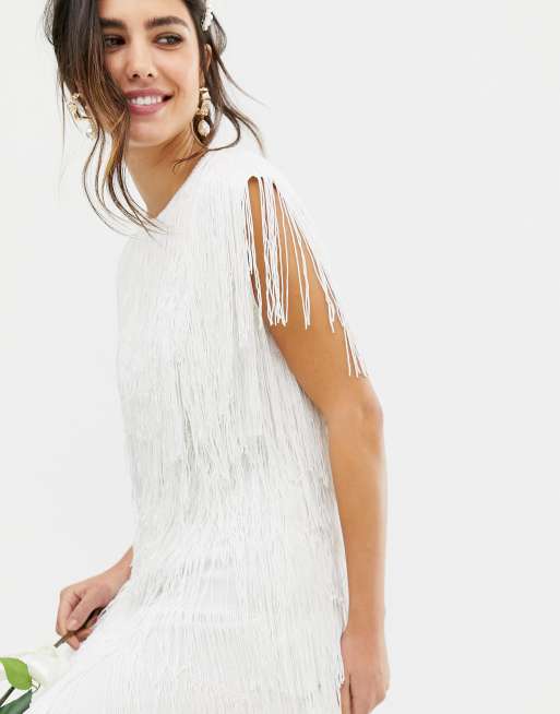 ASOS DESIGN fringe embellished midi wedding dress with a low back