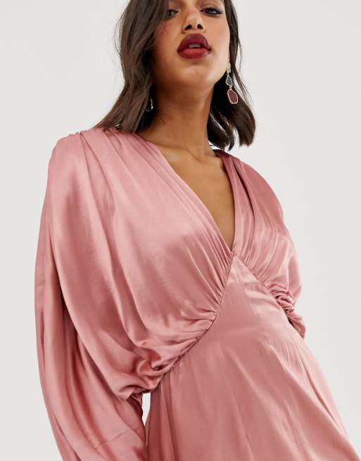 Asos edition ruched batwing sales midi dress in satin, ASOS EDITION ruched batwing midi dress in satin sales