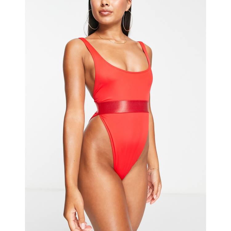 ASOS DESIGN high leg elastic swimsuit in red RED ASOS