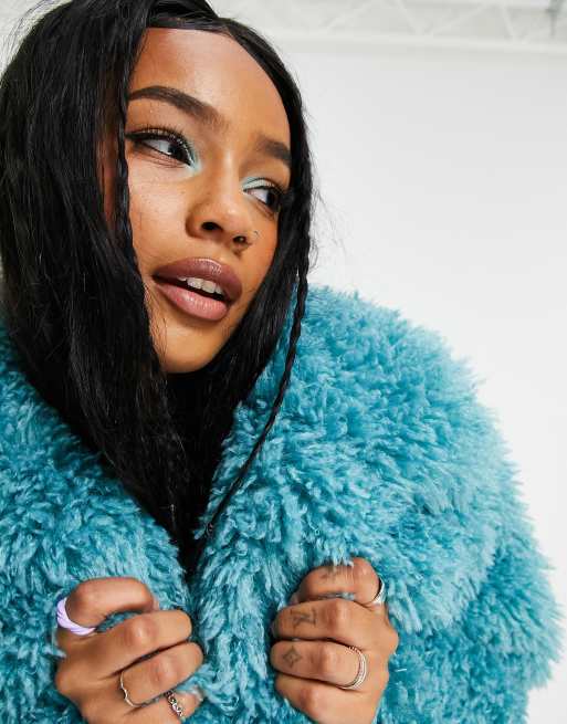 ASOS DESIGN Petite faux fur maxi coat in blue