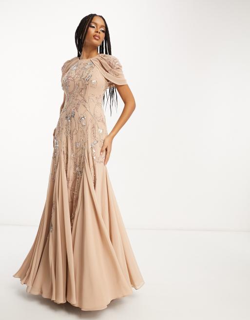 ASOS DESIGN embellished maxi dress with godet skirt and drape sleeves in light pink