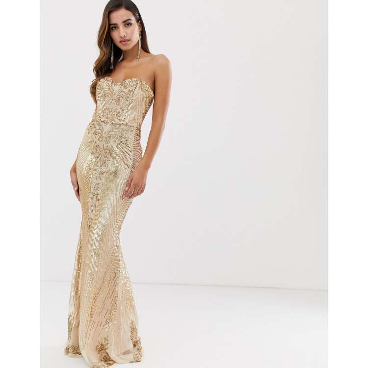 Goddiva bandeau sequin embellished maxi dress in gold ASOS