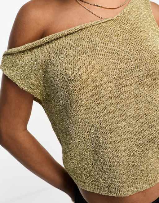 Asos sales gold top, ASOS DESIGN crochet halter top in metallic yarn in gold sales