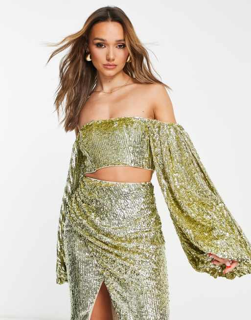 ASOS EDITION off shoulder tie back top in pale gold sequin ASOS