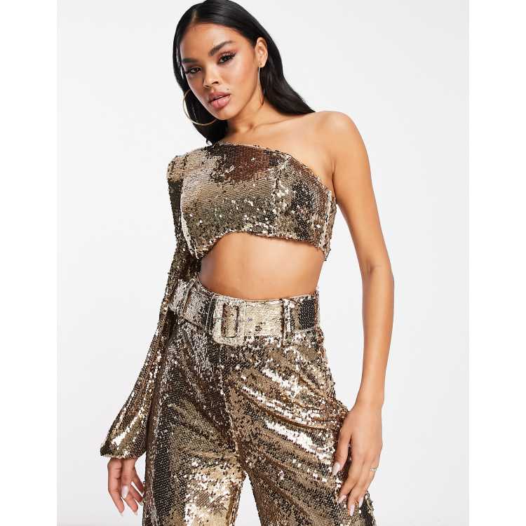 ASOS LUXE co ord one sleeve top in gold ASOS