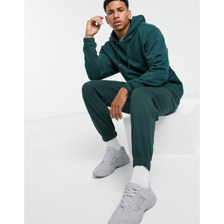 ASOS DESIGN tracksuit with oversized hoodie and jogger in dark green