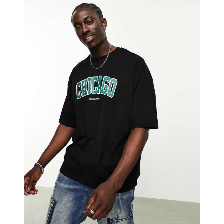 ASOS DESIGN oversized t shirt in black with Chicago front print ASOS