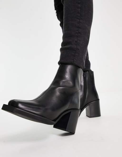 ASOS DESIGN heeled chelsea boots with angled toe in black leather