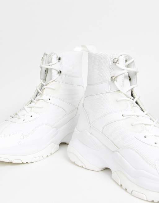 ASOS DESIGN high top trainers in white mesh with chunky sole