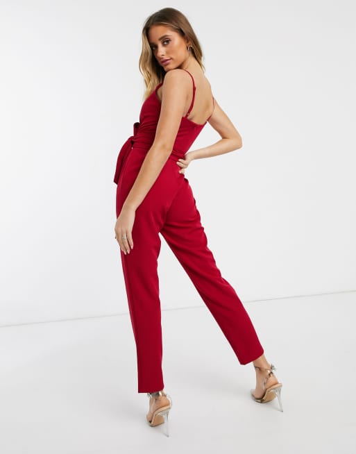ASOS DESIGN strappy plunge peg leg jumpsuit in red ASOS