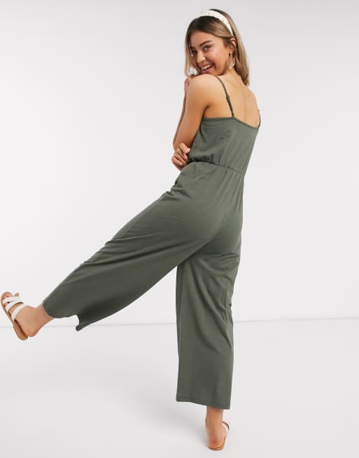 ASOS DESIGN strappy culotte jumpsuit in khaki