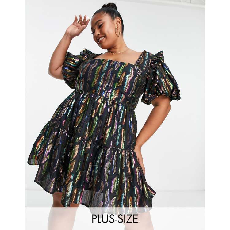 Lovedrobe Luxe Plus rainbow texture mini dress in multi