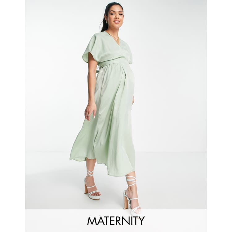 Flounce London Maternity kimono sleeve midi dress in sage satin