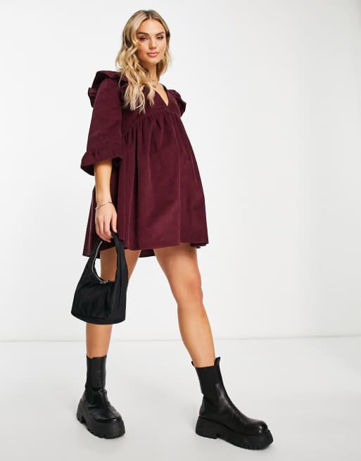 ASOS DESIGN Maternity cord mini smock dress with ruffle shoulder