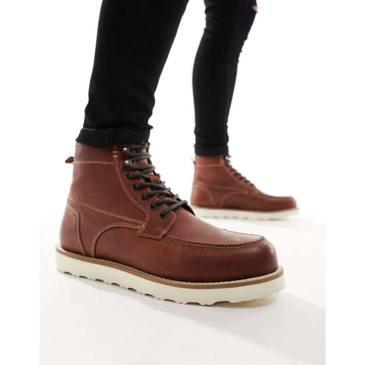Asos sales mens footwear, ASOS DESIGN lace up boot in brown leather with contrast sole ASOS sales