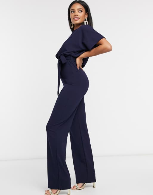 Asos navy sales blue jumpsuit, NaaNaa satin plung jumpsuit in navy sales
