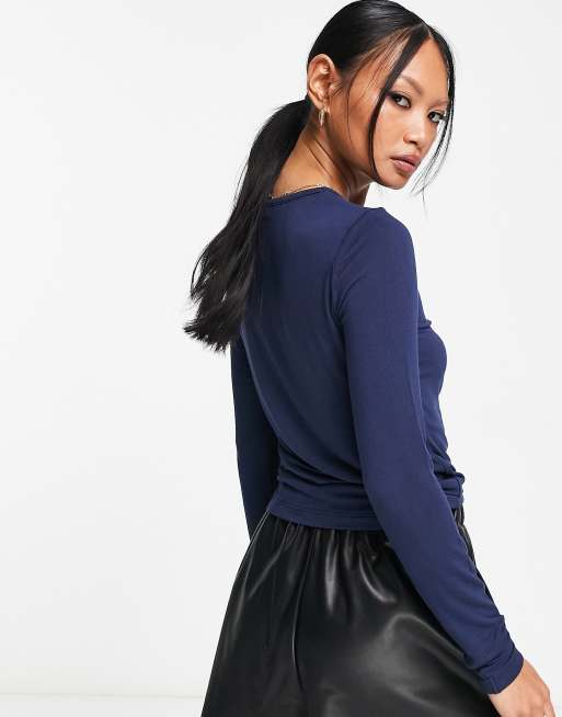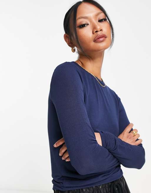 ASOS DESIGN contrast base layer top long sleeve top in navy