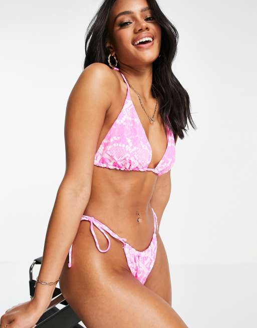 ASOS DESIGN channel tie side bikini bottom in neon snake print