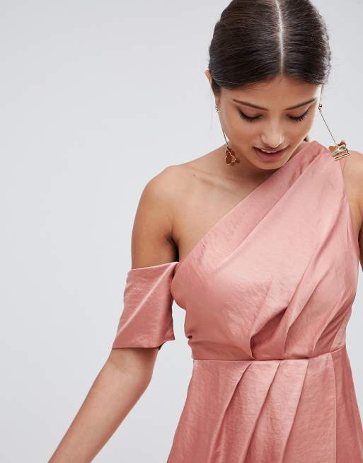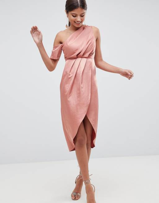 Asos one shoulder midi sales dress in hammered satin