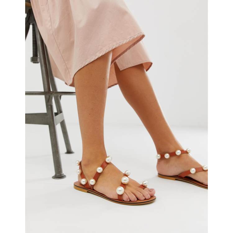 ASOS DESIGN Fare leather pearl flat sandals ASOS