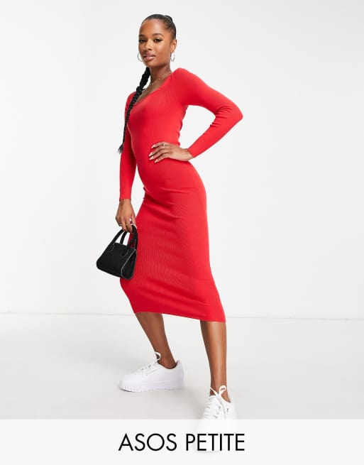 ASOS DESIGN Petite knitted midi dress with open back and ruched detail in red