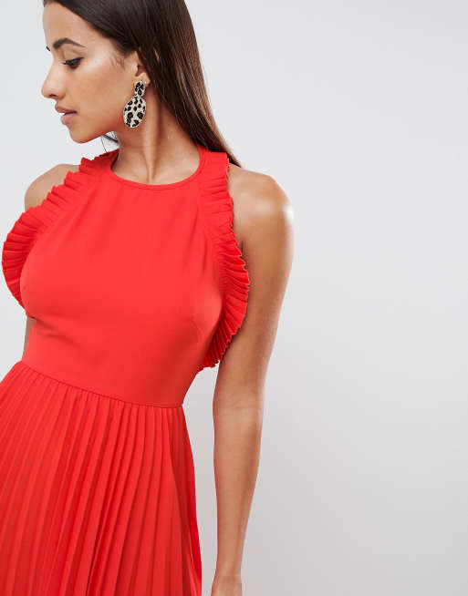 Asos pleated midi dress sales with ruffle open back, ASOS Pleated Midi Dress With Ruffle Open Back sales