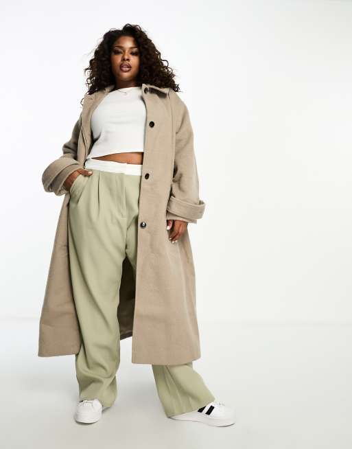 Asos sales plus coats, ASOS DESIGN Curve brushed boyfriend wool mix coat in mushroom sales