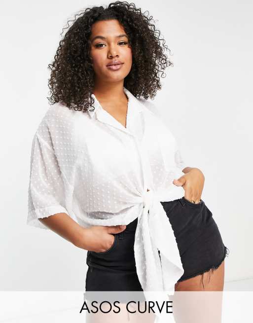 ASOS DESIGN Curve tie front textured shirt in ivory ASOS