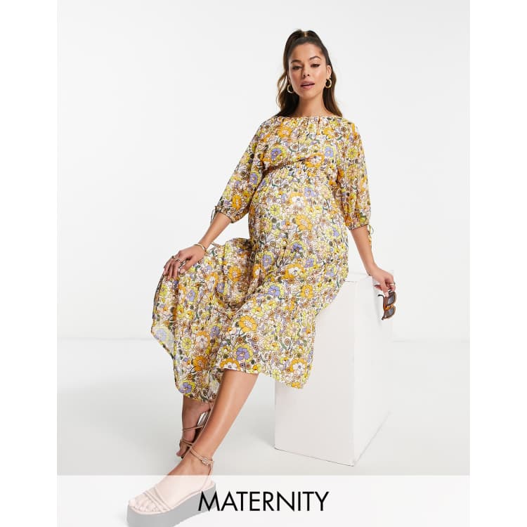 Violet Romance Maternity puff sleeve tiered midi dress in 70s