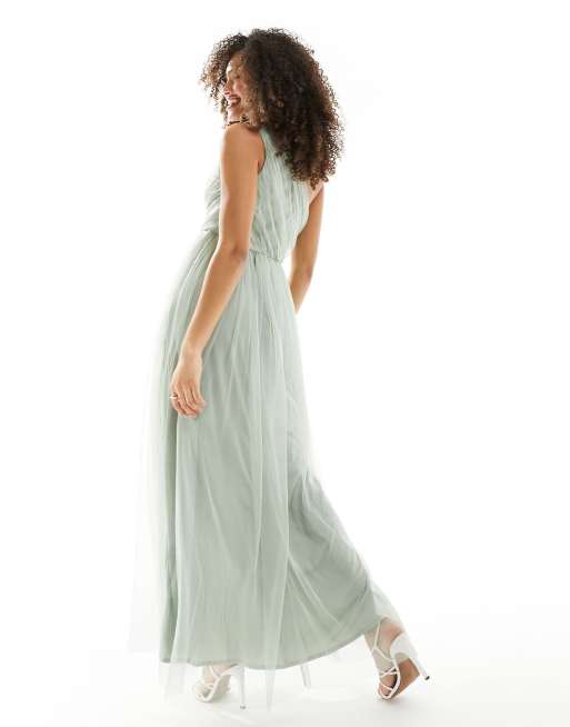Anaya Bridesmaid tulle one shoulder maxi dress in sage green