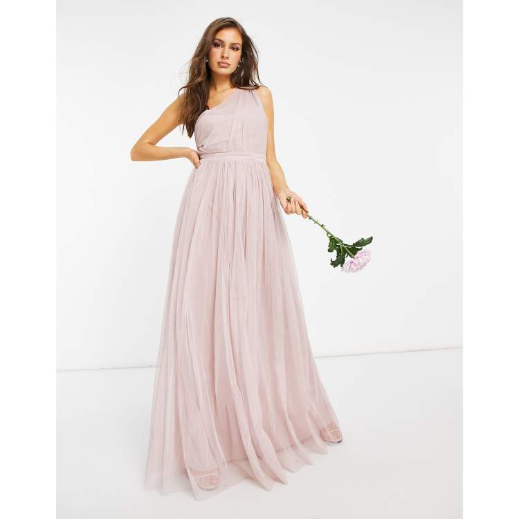 Anaya With Love Bridesmaid tulle one shoulder maxi dress in pink