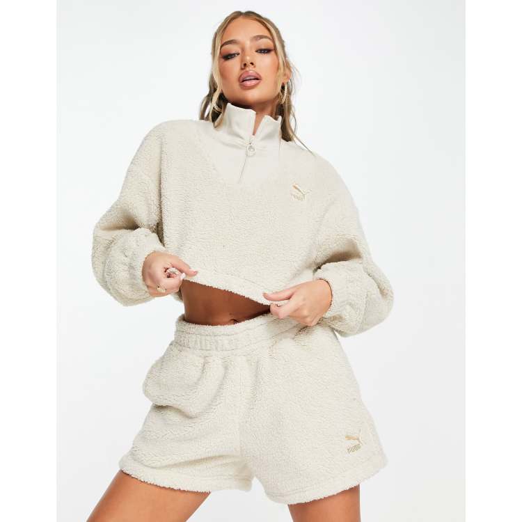 Puma classics cosy club borg half zip sweat in oatmeal exclusive