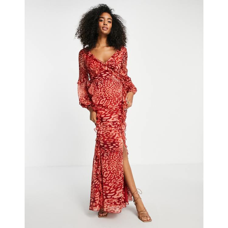 Asos red animal sales print dress, ASOS DESIGN bias cut maxi dress with mixed scale animal print ASOS sales