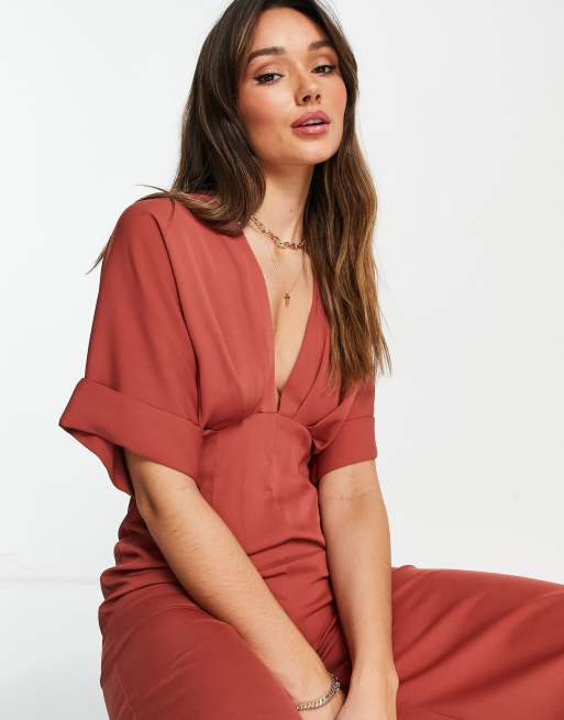 ASOS DESIGN batwing plunge jumpsuit in rust