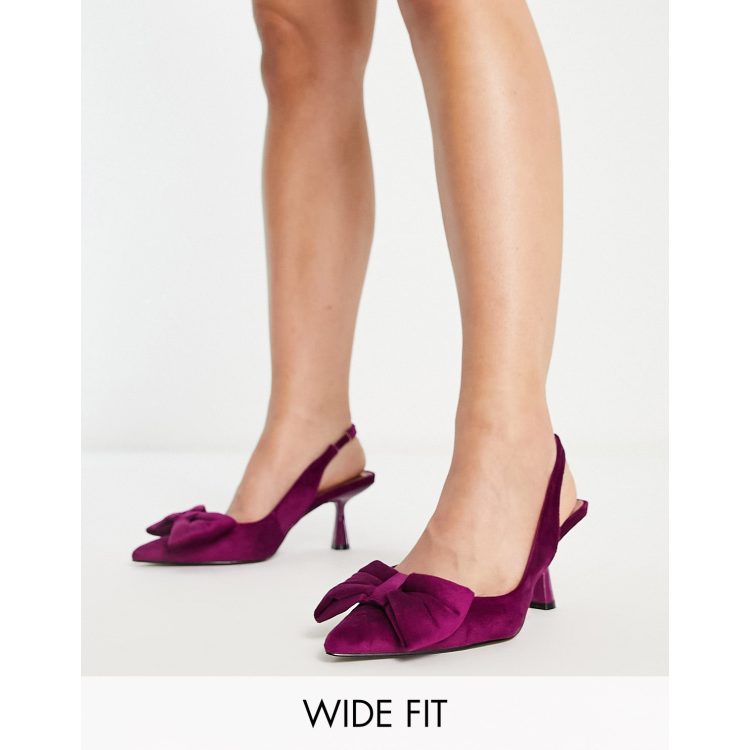 ASOS DESIGN Wide Fit Scarlett bow detail mid heeled shoes in pink