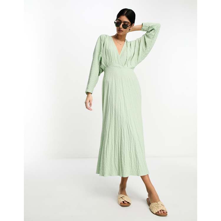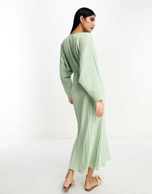 ASOS DESIGN seersucker wrap front batwing midaxi dress in sage green