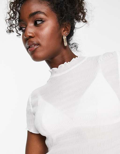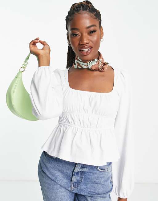 Asos sales shirred top, ASOS DESIGN shirred waist long sleeve top in white sales