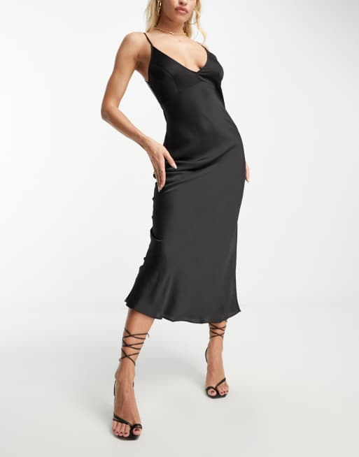 ASOS DESIGN satin cami maxi slip dress in black ASOS