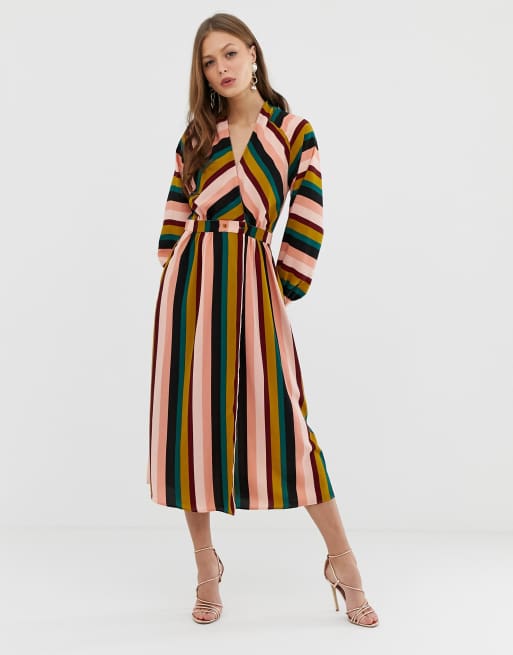 ASOS DESIGN pleated wrap midi dress in multi stripe