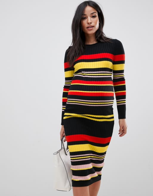 ASOS DESIGN maternity dress in rib striped knit ASOS