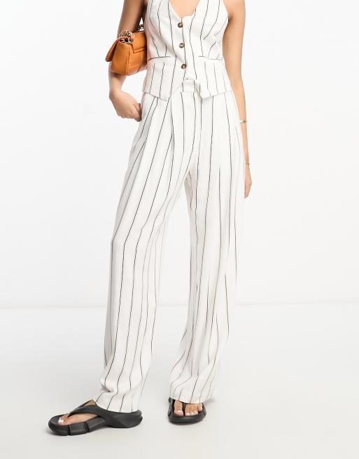 ASOS DESIGN striped inverted pleat wide leg trousers with linen in